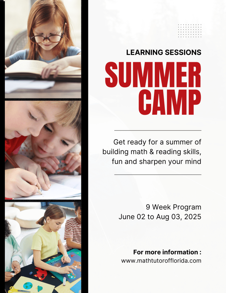 We are offering a 9 weeks SUMMER CAMP. The program will run from Jun-Aug. Building math & reading skills during the summer can be fun, challenging, and rewarding. Doing just a few minutes of math daily and solving reading comprehensions can increase the student’s retention and boost new skills to prepare for next year. Building confidence, practicing, and preparing can all be successfully done with the help of our summer program.
